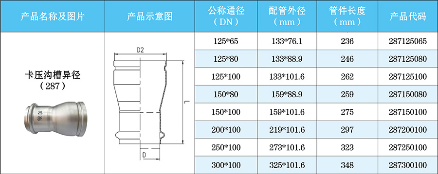 沟槽管件连接方式具有独特的柔性特点,使管路具有抗震动、抗收缩和膨胀的能力,与焊接和法兰连接相比,管路系统的稳定性增加,更适合温度的变化,从而保护了管路阀件,也减少了管道应力对结构件的破坏。由于沟槽管件连接操作简单,所需要的操作空间变小,这为日后的维修带来了许多方便条件。当管道需要维修和更换时,只需松开两片卡箍即可任意更换、转动、修改一段管路。不需破坏周围墙体,减少了维修时间和维修费用。