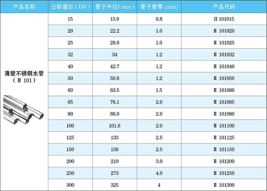 薄壁不锈钢水管特点:耐腐蚀、耐老化、耐压力、抗拉力、无污染、寿命长、安装简便等优点。